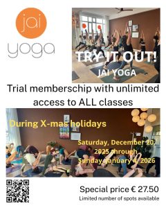 Try out Jai Yoga during your X-Mas holidays. Unlimited access to all classes in the period between Saturday 20th December 2025 until Sunday 4th January 2026.